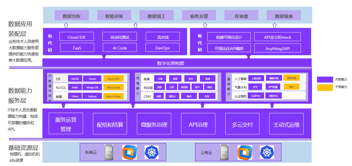 作为国内的领先云原生开发平台,kaiyun开云创新不断探索云原生+大数据开发平台的建设之路,在基础资源层,包含物理机、虚拟机和k8s资源;数据能力服务层是IT技术人员负责数据能力构建,包括可部署的模块和API;数据应用装配层,业务技术人员使用大数据能力服务层提供的能力快速组装大数据应用。