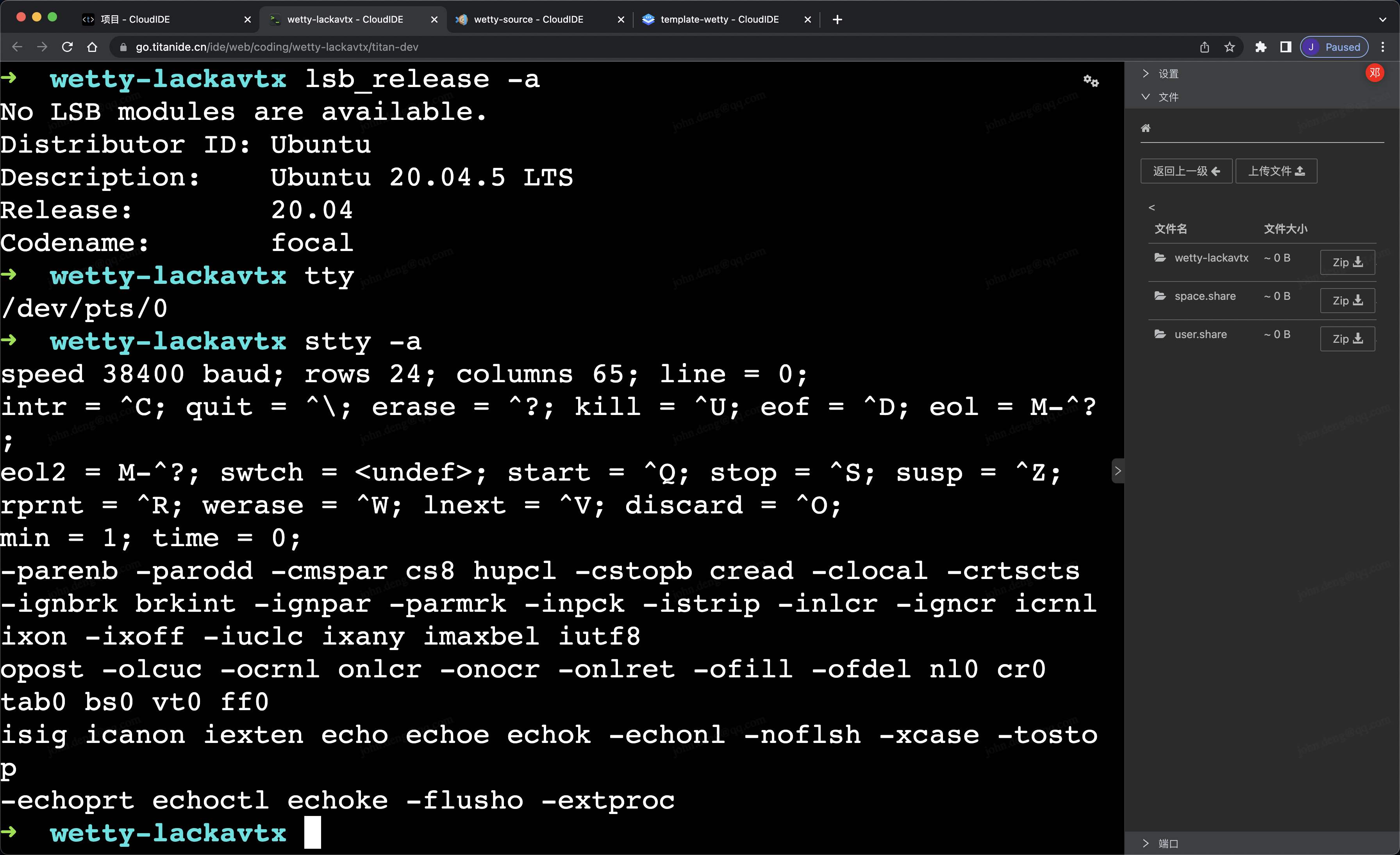 在选用如 WeTTY 这样的开源软件过程中,和使用其他开源软件一样,并不是无偿完全无偿使用的,为了价值的最大化,这就需要像 TitanIDE 这样的开发环境,在 TitanIDE 上面折腾的这些开源软件有个好处就是,我不需要为了某个开源软件去准备开发环境,因为 TitanIDE 提供了我要的开发环境模板,开箱即用。在这个基础之上,我们又可以创建属于自己的模版,本文展示了如何在 TitanIDE 快速解决开源软件的问题,然后定制一个 WeTTY 云端 Terminal 作为开发环境的完整过程,希望能帮到有需要的开发者。
