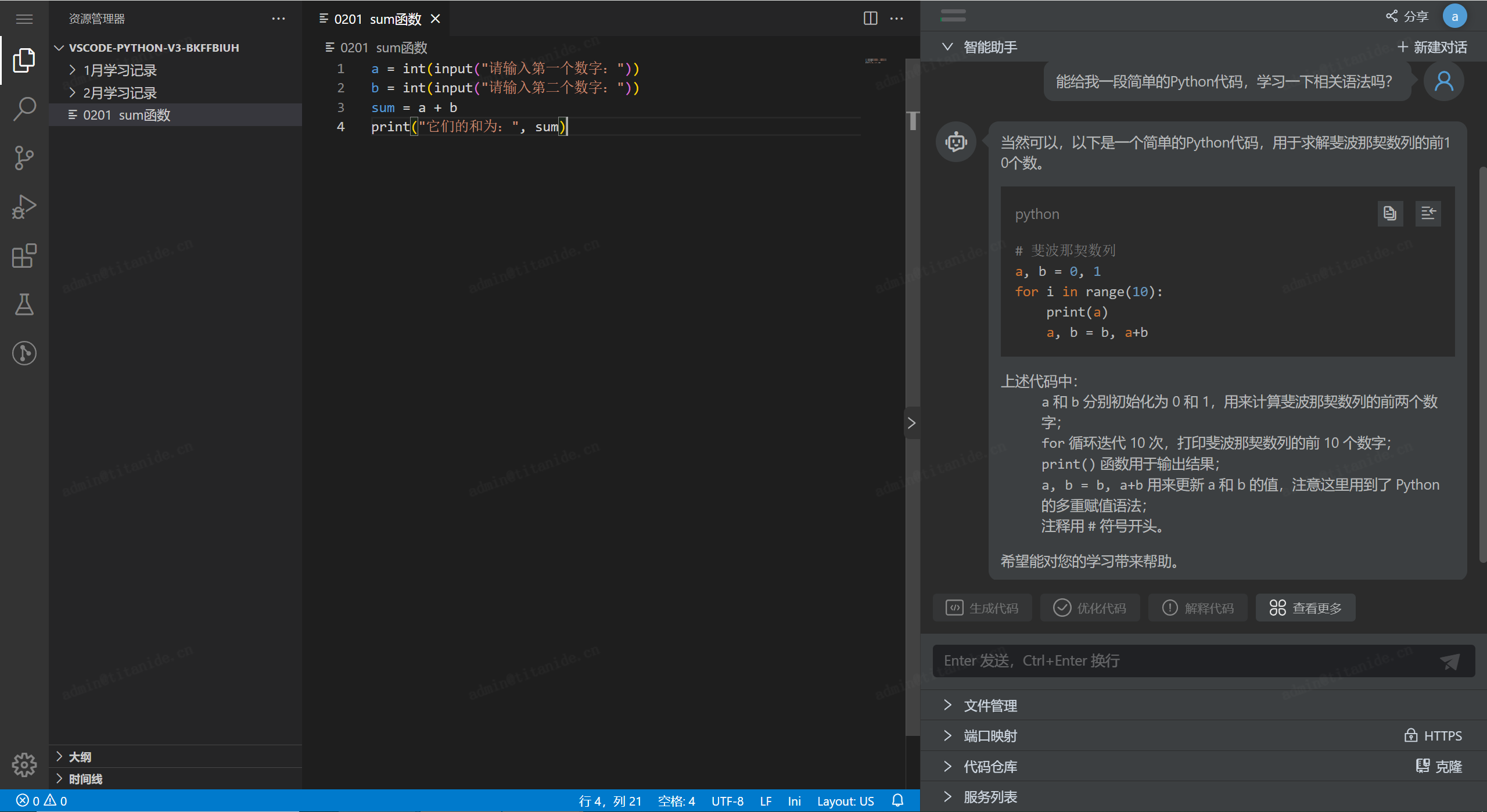 这时候,只需要用10分钟,通过执行一个命令行安装TitanIDE,就可以省略上面提到的所有步骤,只需要点击你想使用的语言模版,就是一个已经配置好的环境,随时开发,自动保存。TitanIDE还配置了AI小助手,提供一对一教学解答服务.....对新手开发者友好,对资深开发者辅助到位。